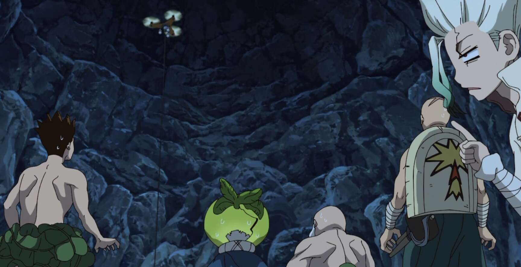 第13話では、カセキが石像から復活し順調にドローン製作を進めていきます。さらに残りの石像も大樹によって全て回収でき、復活液が出来次第、順次仲間を復活させていく予定です。