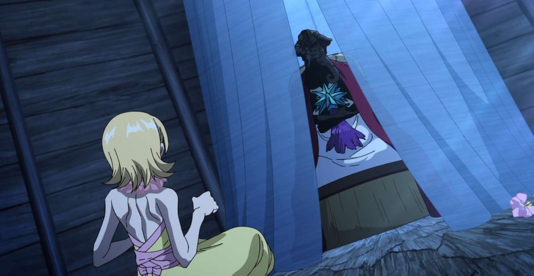 イバラの手によって致命傷を負った銀郎はコハクと合流すると、頭首は石像で、ソユーズにそっくりだった事を伝えると死を覚悟します。