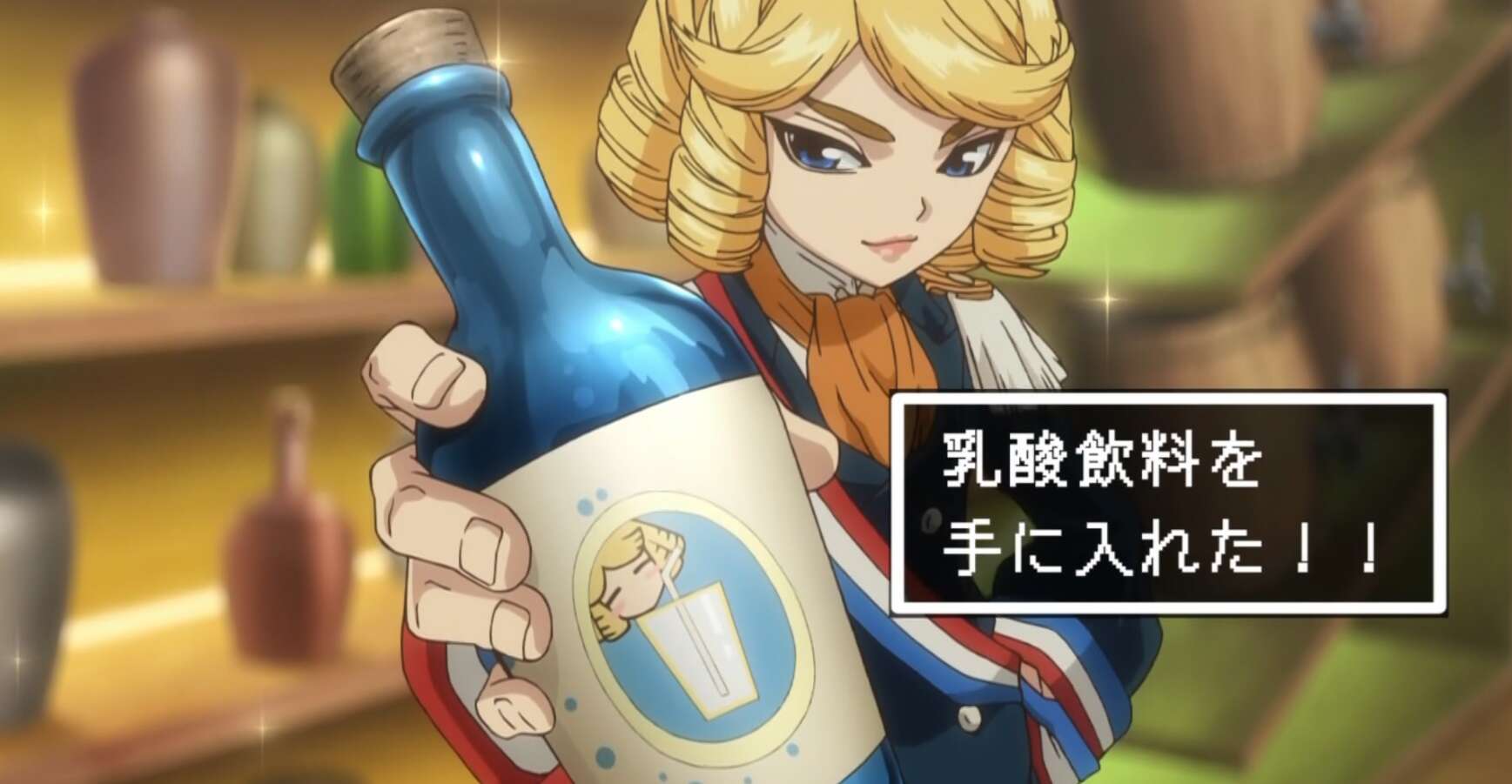 ビールを飲んで楽しむ船員達がいる一方で、千空を含めて何人かは航海に支障が出ないように見張りをする為、アルコールを飲まないようにしていました。しかし龍水は自分の船に乗っている以上は、楽しむ時はとことん楽しんでもらうと言いフランソワに合図を送ると、フランソワは各自に合わせたオリジナルソフトドリンクカクテルを作ります。また千空はフランソワの為に、麦と毒重石、硫酸からガムシロップを作り、さらにガムシロップに濾したヨーグルト、レモンを混ぜてカルピスっぽい乳酸飲料も作ります。