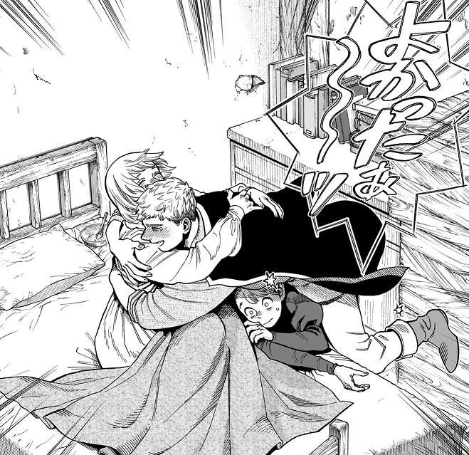 しかし、ファリンが生き返ったと分かり、ライオスは喜びファリンに抱きつきます。