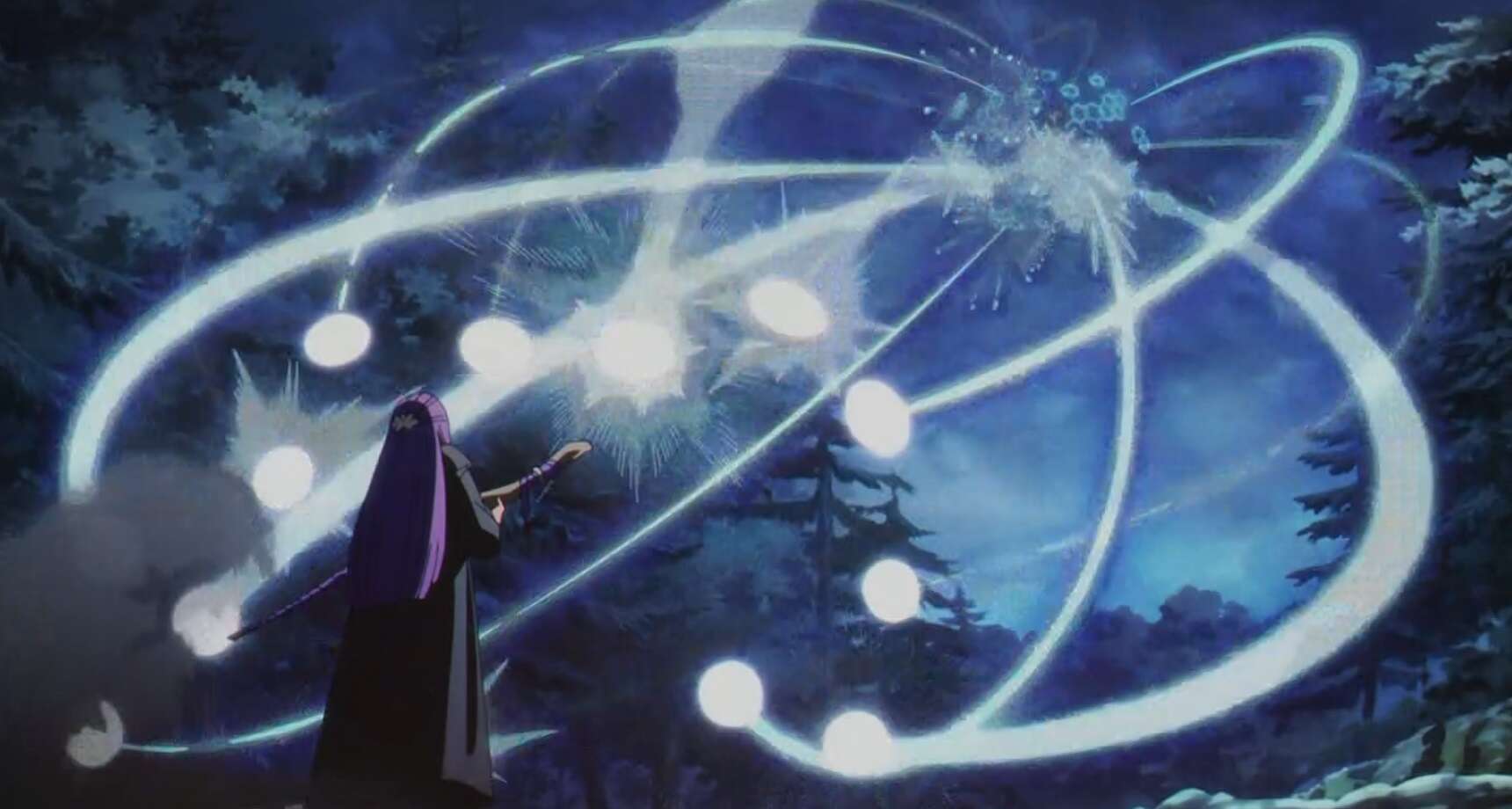 ユーベルの攻撃をとっさに避けて、ヴィアベルは再びソルガニールでユーベルを拘束します。ユーベルとの会話でヴィアベルは、ユーベルを殺すことを躊躇ってしまいますが、最終的にヴィアベルはユーベルを殺す覚悟を決めて、魔法で殺そうとします。しかしヴィアベルが殺そうとする直前、エーレを倒したフェルンが魔力を消した状態で突然現れ、ヴィアベルに杖を突き付けて動かないように警告します。