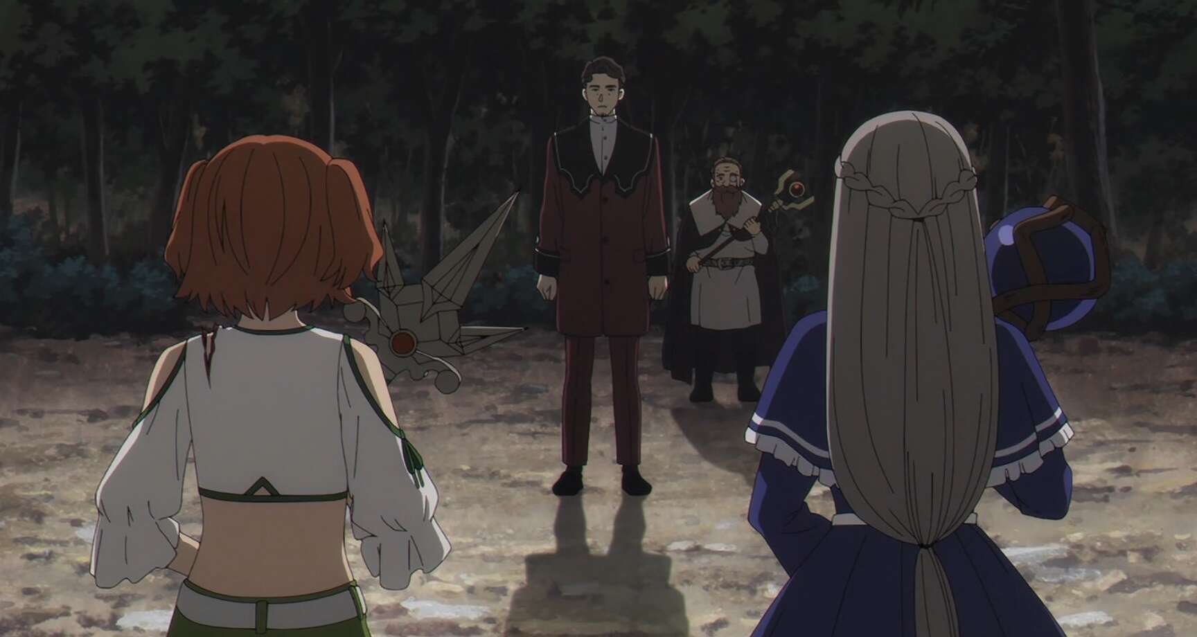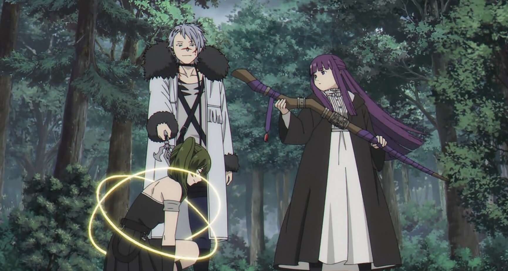森の中でヴィアベルは倒れているエーレを見つけます。エールは殺されておらず気を失っているだけで、ヴィアベルは嘘をついたフェルンに悪態をつきます。ヴィアベルはエーレをおんぶして、さらに倒れているシャルフも回収します。しかし戦闘不能のメンバーが2名となり、ヴィアベルは第一次試験の不合格は確定だと諦めてしまいます。