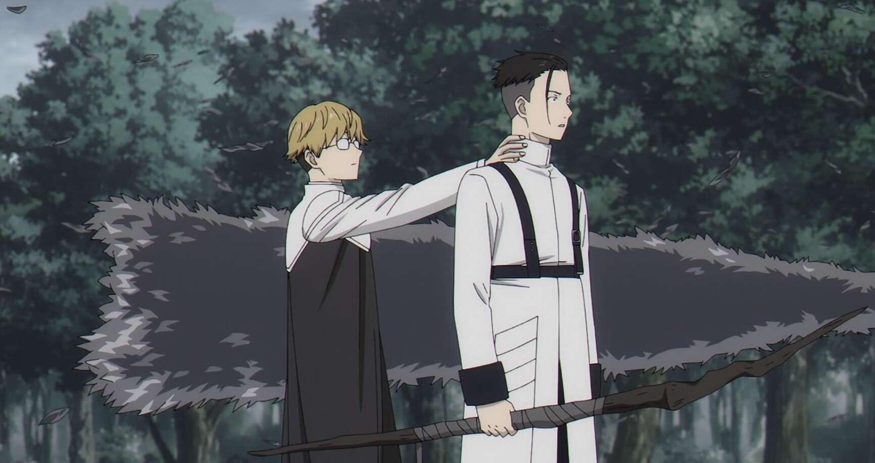 シュティレを奪ったデンケン組ですが、ラオフェンは未熟で魔法の痕跡を追われたら容易に追跡されてしまう、とデンケンとリヒターはフリーレン達を足止めに姿を現します。デンケンがフリーレンを足止めする間に、リヒターはラヴィーネかカンネのどちらかを殺すつもりですが、デンケンは足止めできればそれでいい、とリヒターに殺すのは止めろと言います。