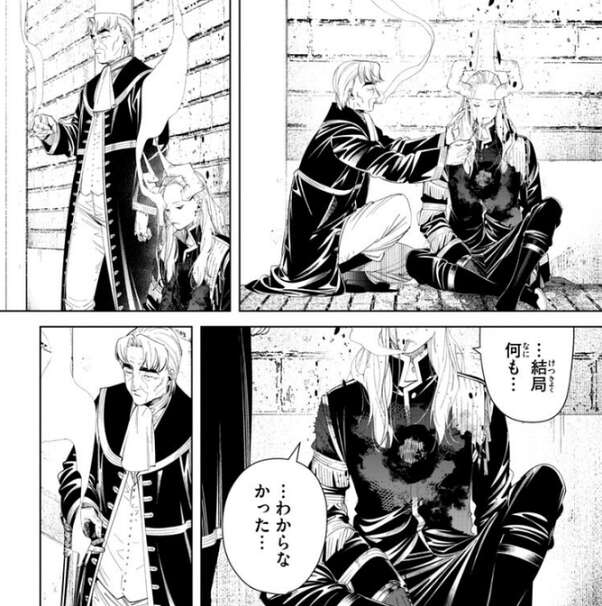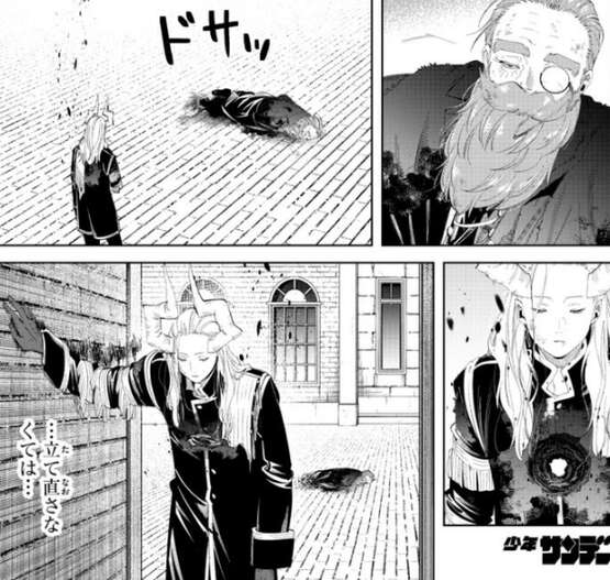 デンケンはマハトと相打ちとなって、さすがに助からないかな?と思っていましたが、元に戻ったグリュック達によって、教会に連れて行ってもらい助かりそうですね。この後、数話ぐらい黄金郷のマハト編の後日談をやりそうな感じですね。