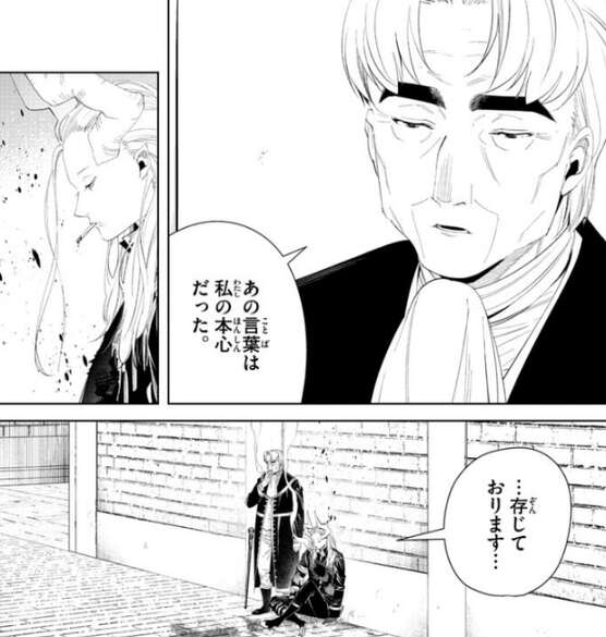 地獄の底まで付き合うと言った、あの言葉は本心だった、とグリュックが言うと、…存じております…、とマハトはグリュックに答えます。そんな風にマハトとグリュックが会話をしていると、デンケンが歩いてマハトに近づいてきます。