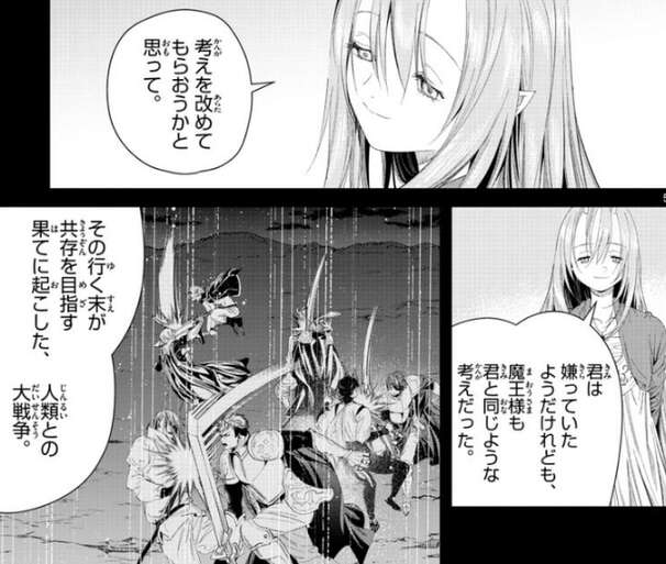 人類との大戦争は何も楽しくなかった、友達も全員死んじゃった、とソリテールは言い、共存という思想は危険だわ、とマハトに忠告します。もう少しで魔族は、人類に駆逐され絶滅するところだった、とソリテールは言いますが、マハトは、答えになっていない、と反論します。