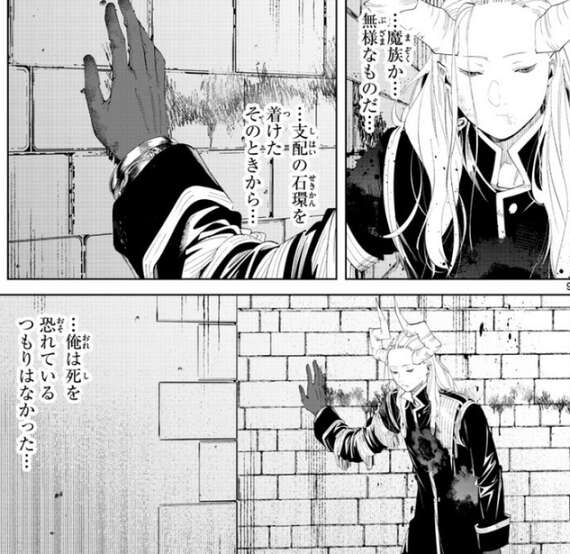 ソリテールとの会話を思い出しながら、魔族の自分を無様なものだ、とマハトは自虐的に言います。支配の石環を着けたときから、死を恐れているつもりはなかった…、とマハトは心の中でつぶやきます。