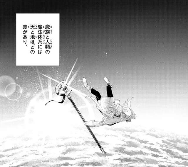 魔族と人類の魔法体系には天と地ほどの差があり、才に優れた魔族の扱う魔法は熟練の魔法使いにさえ、まるでおとぎ話に出てくる“魔法”のようだと言わしたようですが、人類の魔法体系には実在する事すら証明されていない、空間転移の魔法でフリーレンを空に飛ばしたようです。この時代、人類は飛行魔法を持っていないので、この時代の魔法使いなら、このまま自由落下で簡単に死んでしまいます。