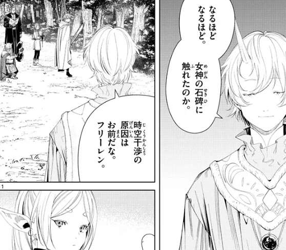 ヒンメル達は突然現れた魔族に警戒しますが、魔族はフリーレンを見て、女神の石碑に触れたことを言い当てます。さらに魔族はフリーレンが未来から来たことを分かっているようで、時空干渉の原因はお前だな、フリーレン、と魔族はフリーレンに話しかけます。