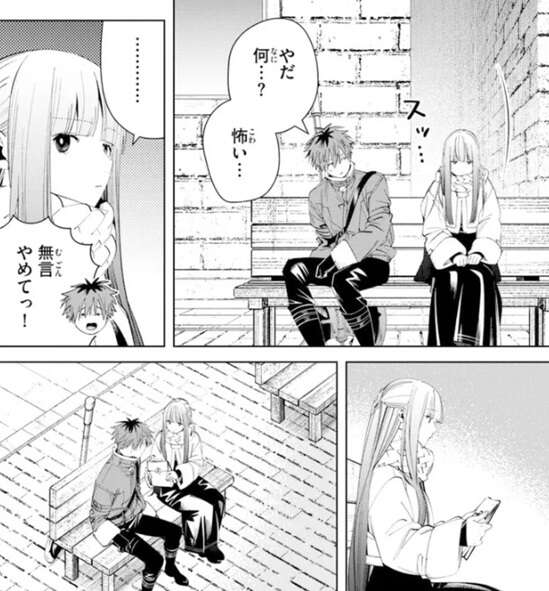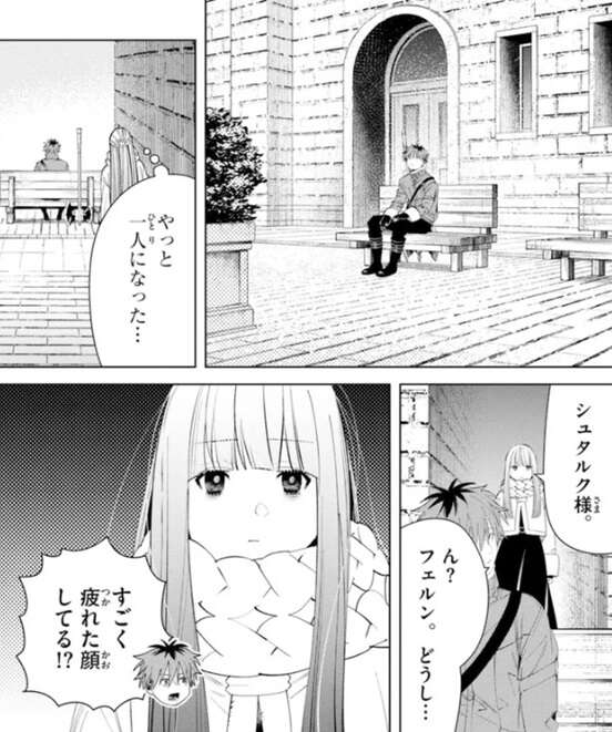 フェルンはシュタルクの後を追いかけ続けて、ようやくシュタルクは広場で一人になります。フェルンはシュタルクに声を掛けますが、フェルンがすごく疲れた顔をしているので、シュタルクはその事にとても驚きます。