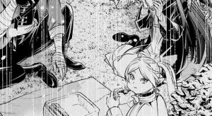 なんで私にそんな話をするの?と、フリーレンが聞くと、男は底なし沼にはまっている最中でした。男はフリーレンに助けを求めますが、フリーレンは手が汚れて汚くなっているのを気にして、乗り気ではありません。時間をかけて“底なし沼から引っこ抜く魔法”を思い出し、フリーレンは男を(時間がかかりましたが)助け出します。