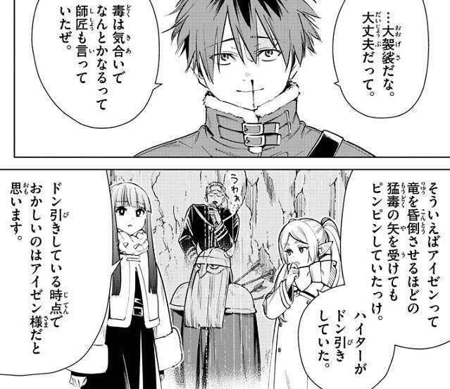 シュタルクは大袈裟だと言い、毒は気合で何とかなると師匠のアイゼンが言っていたと言います。しかし、アイゼンは竜を昏倒させるほどの猛毒の矢を受けてもぴんぴんしていて、ハイターがドン引きしていたぐらいなので、あまり当てにならなさそうです。