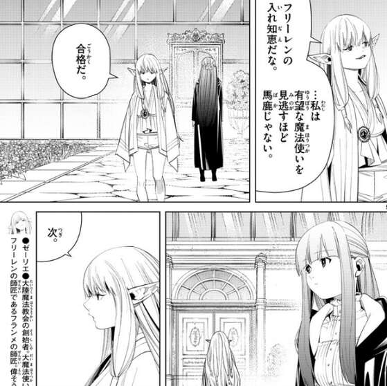 ゼーリエはフリーレンの入れ知恵だと気付きますが、有望な魔法使いを見逃すほど馬鹿じゃない、と言い、フェルンに合格だと言います。
