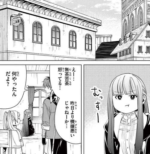 1人、宿屋で夕方まで寝ていたシュタルクは寝ぐせも結構、すごいことになっています。フェルンがシュタルクの寝ぐせを注意して、直してあげようとしています。私生活チェックはシュタルクに対しても、厳しそうです。