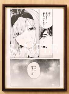 五つ子たちそれぞれの名シーンを、複製原稿にしています。裏面には春場先生の複製サインが入っています。さらに、シリアルナンバー入りの豪華仕様です。ただし、金額もそれなりの金額なので、どれを買うかは慎重に。