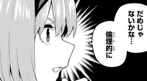 絶句している四葉ですが、三玖からどうかな?と質問され、駄目じゃないかな…、論理的に、と正論で返事をします。