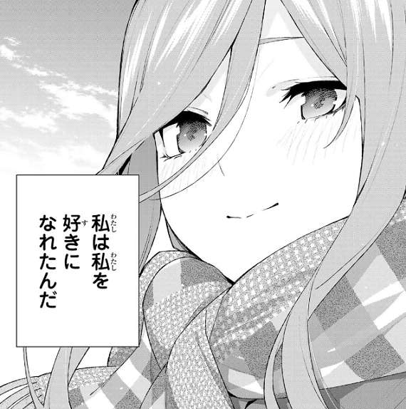 そして、ようやくそう思えるほどに…、私は私を好きになれたんだ、と思った時に三玖の表情は事前と笑顔になっていました。