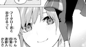 四葉は二乃の気持ちを分かってあげられてなかった…と反省し、怒られて当然だと言います。しかし、二乃は怒ってるのがデフォルトみたいなものだからと三玖は茶化した後、恋愛で私たちは敵でも仲間でもない、と二乃が言っていた事を伝えます。