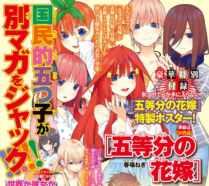 来月の別冊少年マガジンでは、五等分の花嫁の特製ポスターがついてくるようです。