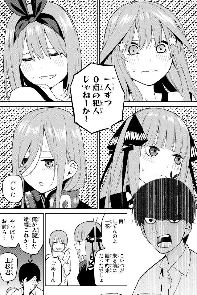 最終的には五つ子達から、風太郎がわざと間違えていると言われてしまいます。