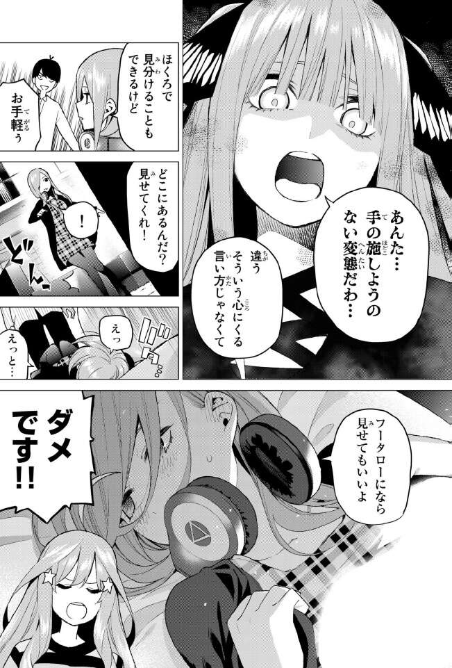 風太郎は全員を見分けようとします。しかし、無残全員間違えます。間違えすぎでしょう。
