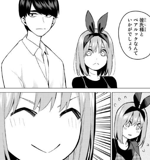 一花と三玖の誘いを断ったうえで、四葉とデートしているので、見つかると修羅場?になってしまいそう。