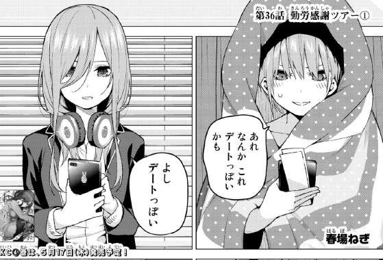 […] 【ネタバレ】五等分の花嫁 36話 『勤労感謝ツアー①』の感想 […]