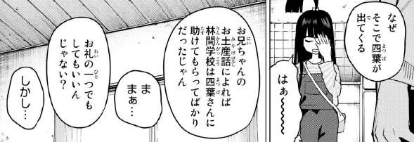 結局四葉に感謝の気持ちをお返ししようとしますが、警戒しまくっています。