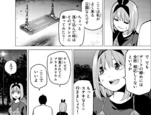 デートの締めに相応しくないと言い、別のステキなところに行こうと言う四葉ですが、風太郎は四葉の一押しの公園ならここで十分だと言います。