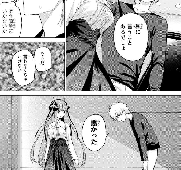 ホテルもチェックアウトしてしましたが、この後二乃はこのまま風太郎と別れて期末試験で赤点を取ってしまうのでしょうか。