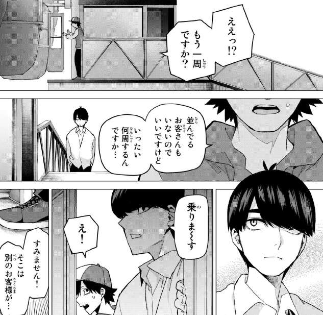 風太郎が四葉を見つけた場所は、観覧車のようですが何週も周回しているようです。