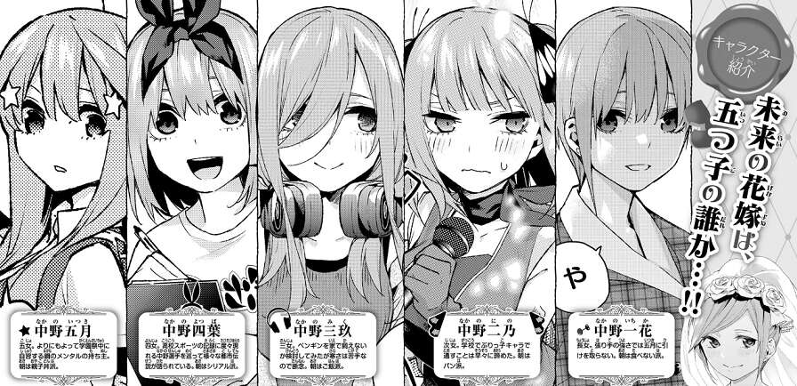 週刊少年マガジンに2017年36・37合併号より連載を開始した五等分の花嫁、13巻が発売されました。第105話から第113話まで掲載されています。
