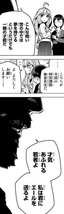 今回は学園祭 後夜祭が終わり、全てのスケジュールが終了したアナウンスを聞いている五月の描写から始まります。その後は時間が巻き戻り、五月は受験対策のために行われる授業を受ける為、赤谷学院に来ていてそこで下田に話しかけます。そこで五月は、下田から特別講師の無堂先生を紹介されますが、無堂先生は学園祭にも参加し五月と偶然再会します。