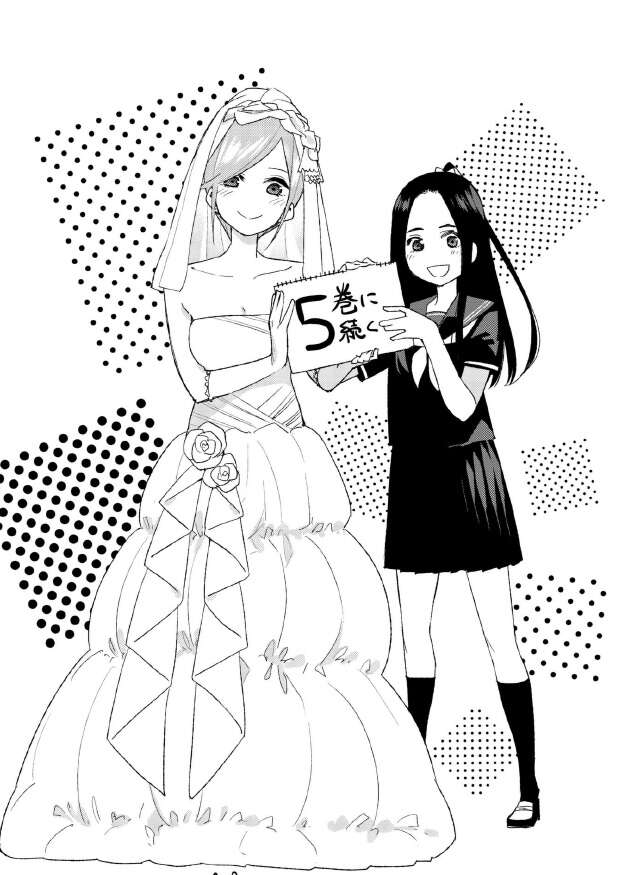 で、5巻に続きます。花嫁の正体は分かりませんが、らいはと五つ子達は相変わらず仲良しである事を示してます。