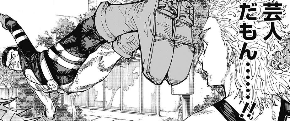 髙羽の戦いっぷりに、……髙羽が敵じゃなくてよかったよ、と伏黒はつぶやくと、一度は言われてみたいセリFUUU(フゥーーー)!!と、髙羽は叫びながら蹴り飛ばした黄櫨の方に走っていきます。