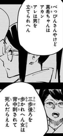 しかし16巻 第138話で、三歩後ろを歩かれへん女は背中刺されて死んだらええ、と言っていた直哉が、背中を刺されて死んでしまうとは…。真希の母親に背中を刺された時といい、直哉は期待を裏切りませんね。