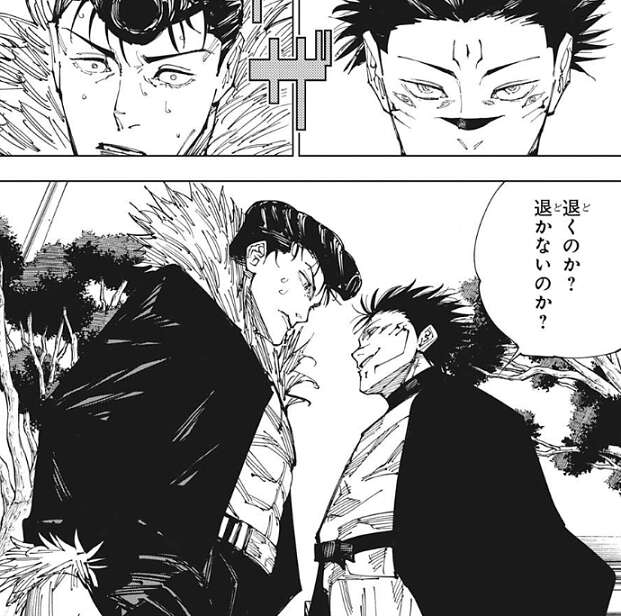 宿儺は石流と遭遇し、退くのか?退かないのか?と、石流に質問します。