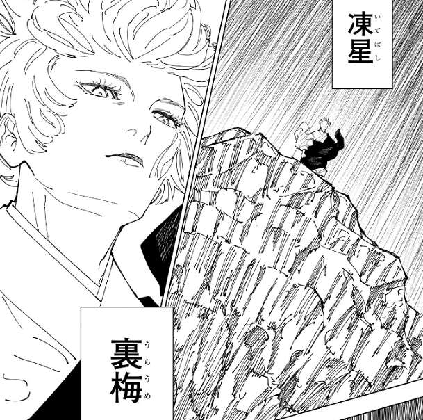 鹿紫雲一は宿儺と戦おうと地上203メートルから跳躍しますが、そこより遥か上空より強大な氷塊と裏梅が現れます。