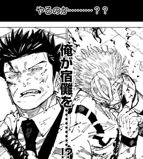日下部は宿儺を見下ろしながら、やるのか…………??俺が宿儺を………!?と、覚悟を決めたような、決めていないような状況で今回は終了です。