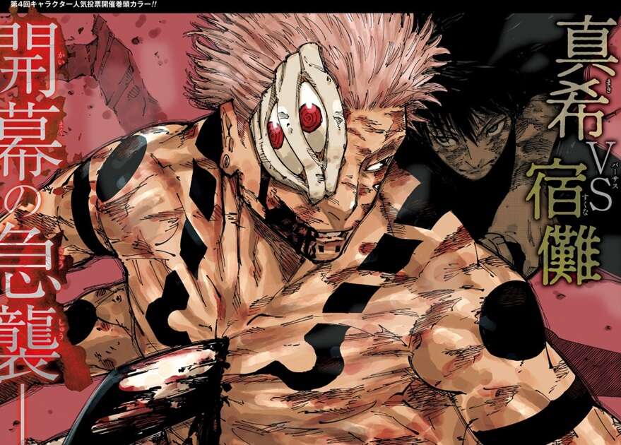 真希は乙骨が助かってもこのまま戦いが長引けば次の問題が生じると考え、宿儺をここで倒しておこうと考えます。一方、五条悟の死後、鹿紫雲一、日車寛見、乙骨憂太、それぞれが逸品の呪術の才能で宿儺をもてなしました。しかし、宿儺の食指を最も動かしたのは、先ほどの三人ではなく呪術を捨て去った天与呪縛の禪院真希でした。この現実に、宿儺は高揚していて好戦的になってきます。