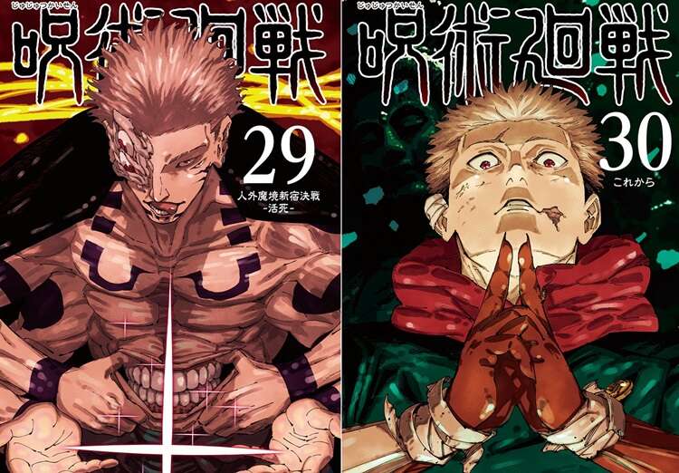 第29巻、第30巻の書影は、見上げる両面宿儺と見下ろす虎杖が描かれています。