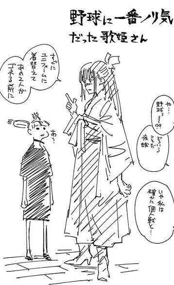 交流会二日目が個人戦から野球に変わり、夜蛾と楽巌寺は聞いていないと五条に詰め寄っています。しかし、歌姫は趣味がスポーツ観戦で野球も好きなようで、すぐにユニフォームに着替えるように、西宮に指示をしています。野球をやっている時も率先して京都校の生徒に指示を出していたので、かなりノリ気ですね。