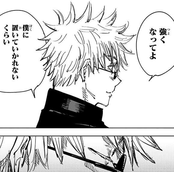 五条は伏黒甚爾の息子で、まだ小学生1年生の伏黒恵と出会います。五条は、強くなってよ、僕に置いていかれないくらい、と伏黒恵に声をかけ、自分と同じくらい強くなるように期待します。