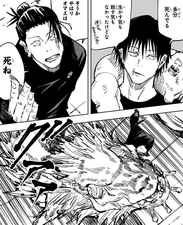 天内を殺された夏油は激怒し、伏黒甚爾を殺そうとしますが、逆に返り討ちに遭い瀕死の重傷を負わされます。夏油の死後、取り込んだ呪霊がどうなるか分からないため、伏黒甚爾は夏油を殺すことはありませんでしたが、天内の死体を奪われてしまいます。