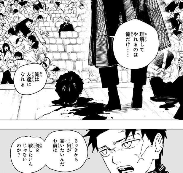理解してやれるのは俺だけ……、俺は友達になれる、と言う昼彦に、殺したいんじゃないのか?と、答えるチヒロですが、殺したいし…友達にもなりたい、本気で殺し合うことで友達になる…んだと思う、友達ができたことがないからわからないけど多分これで合ってる、と意味不明な事を昼彦は言いチヒロは困惑します。