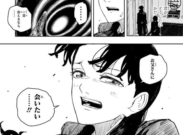 そして、今なら君の想いは届けられる、とチヒロは淵天を取り出します。チヒロにそう言われたイヲリは、一目会えるなら……、お父さんに会いたい……!!と今の気持ちを正直に打ち明けます。