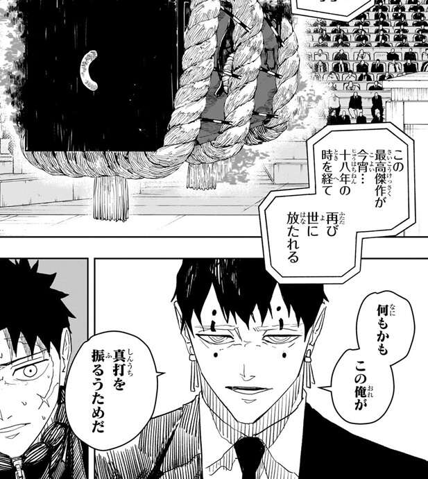 ハクリは柴に教わった通り、自分に宿った能力の輪郭、そして全容を掴むために意識を内側に向けます。するとハクリは威葬だけでなく、もう一つの能力が自分の中にある事に気付きます。その能力は“蔵”で、ハクリは “蔵”と“威葬”の2種の能力を併せ使える漣家・初代当主以来の天才だと判明します。ハクリの才能に気付いた宗也は、ハクリに激怒し殺そうとします。