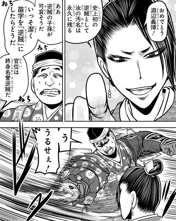 足利直義にあっという間に三方向から包囲され不利な状況の北条軍ですが、北条泰家が敵の三浦時明を寝返らせようと、直接敵陣まで単騎で交渉に行きます。三浦時明は北条泰家の説得など無視して首を獲ろうとしますが、全てのやましさを清算し、楽しく真っ新な世に賭けてみよう?と、北条泰家は説得します。三浦時明は、「犬」と呼ばれ忌み嫌われた三浦家は、見苦しく世渡りを続けてもいずれ嫌われながら滅びるだろう、と心の中でつぶやくと、やましい戦は止める決心をします。
