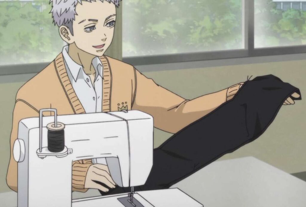 場面変わって、武道は三ツ谷に呼び出されて三ツ谷の中学に行くと、ペーやんが三ツ谷のいる家庭科室まで案内してくれます。三ツ谷が武道を呼び出したのは、武道の特攻服(トップク)を仕立てる為でした。8・3抗争ではドラケンを救い、血のハロウィンではみんなの目を覚ましてくれた、三ツ谷はその感謝の気持ちとして、武道のトップクを仕立てたかった、と武道に言います。