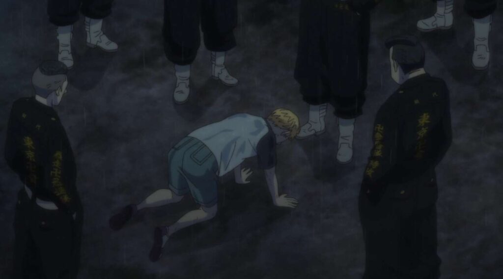 雨の中武道はドラケンを探していると、愛美愛主のメンバーと一緒にいるキヨマサを目撃します。さらにキヨマサは刃物を手に、ドラケンを殺すとつぶやき、ドラケン殺害の犯人はキヨマサでは?と、武道は考えます。武道がキヨマサの様子を覗いていると、キヨマサの仲間に武道は見つかってしまい、キヨマサの前に引きずり出されます。